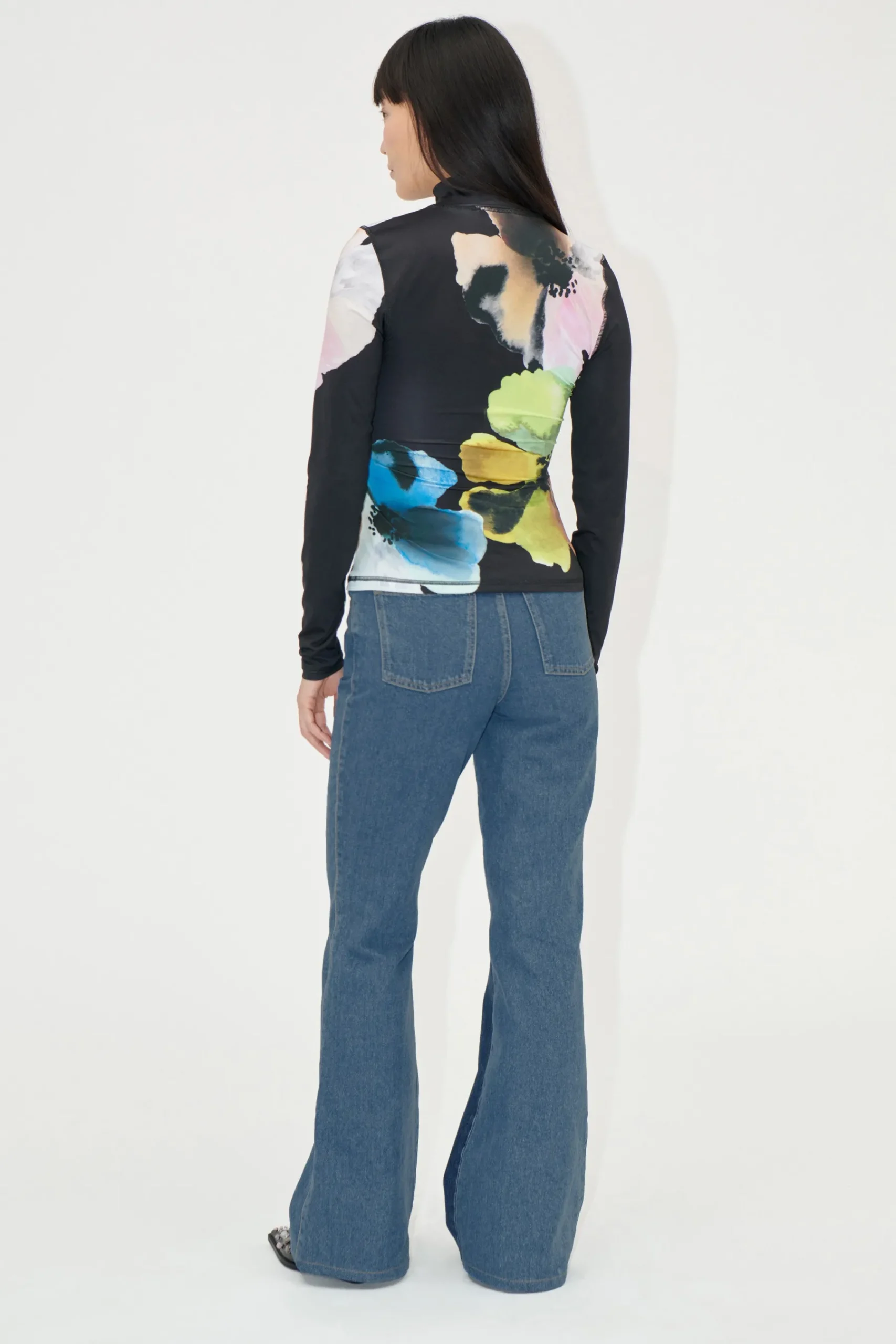 Stretchy fitted top with a turtleneck, long sleeves and colourful watercolor floral pattern. Crafted in Italy. Pair with the Elasticated Long Pants in Watercolor Bloom.