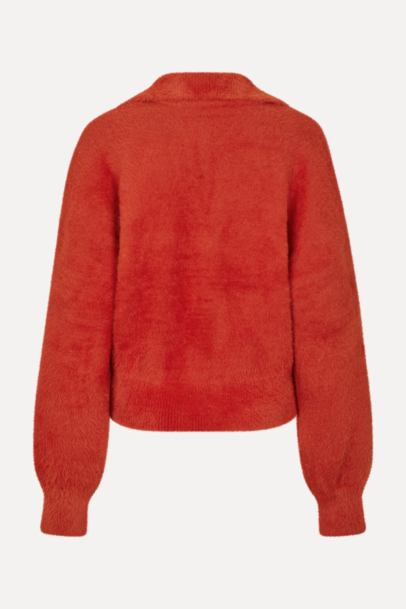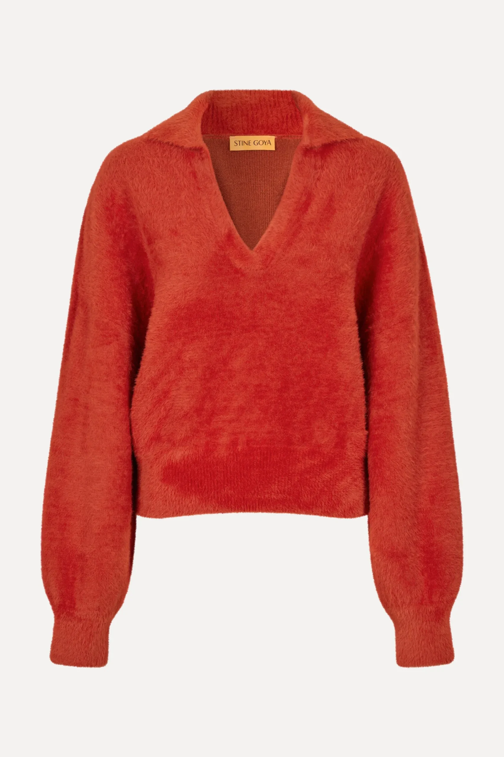 Soft V-neck knit sweater with slouched long sleeves, collar and ribbed hem and cuffs. Pair with the Straight Leg Long Pants in Denim Blue.