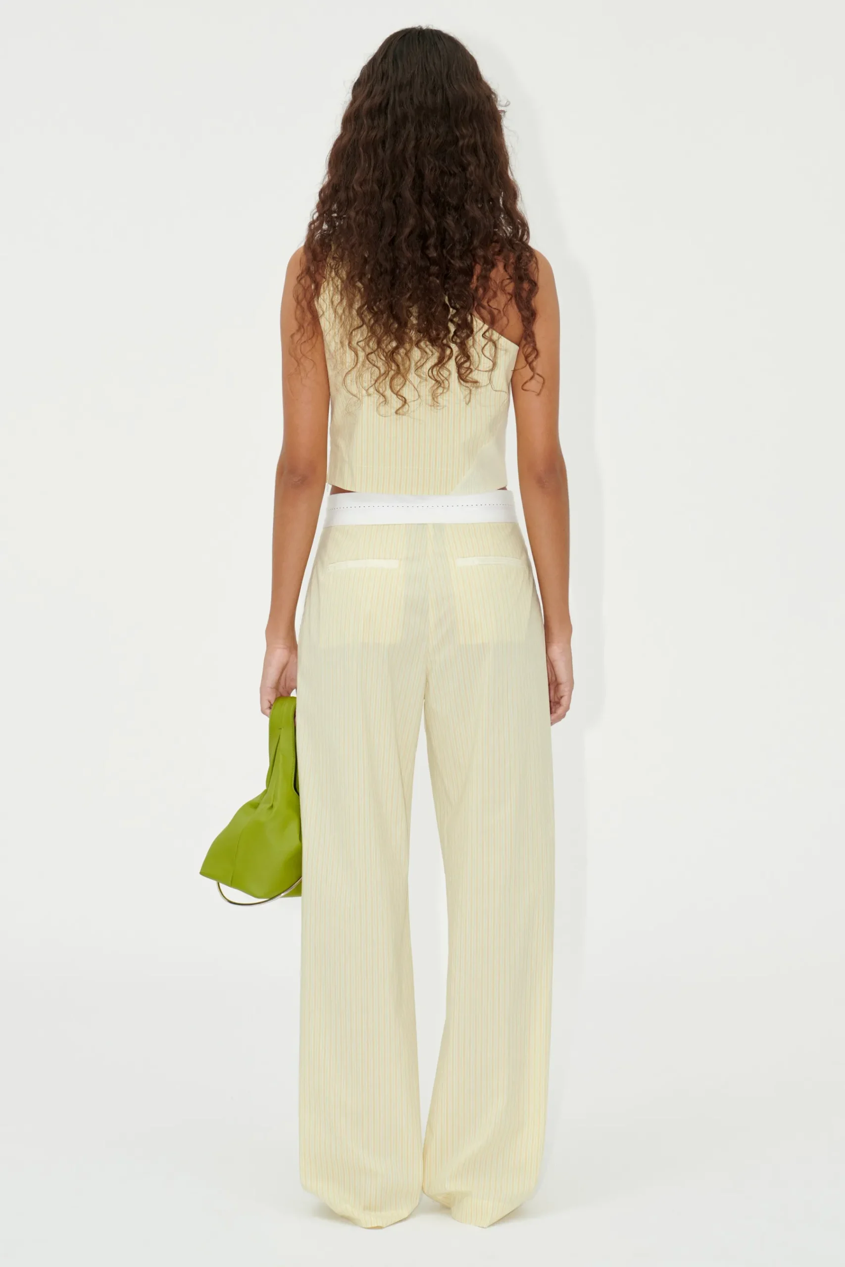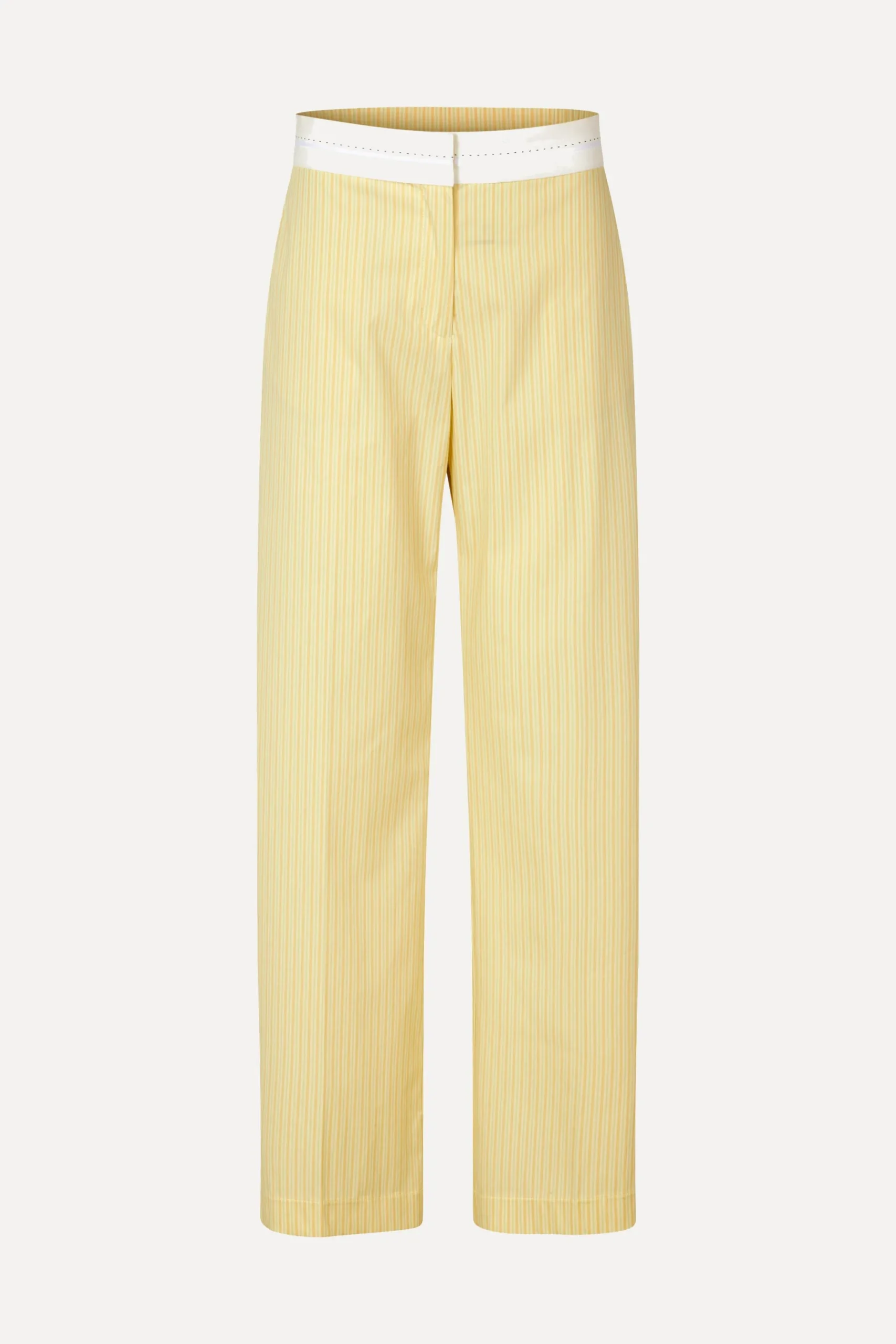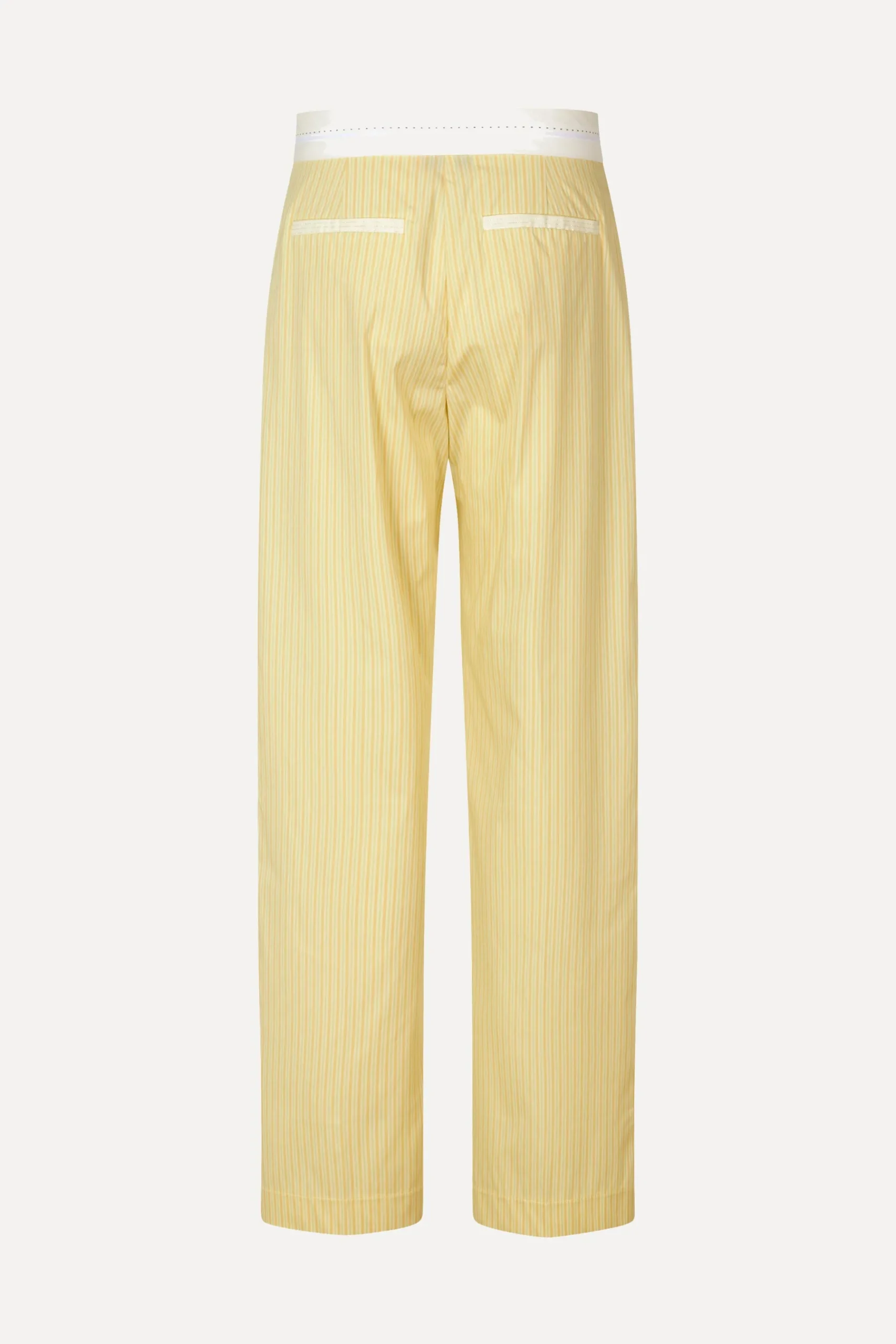 Slouched wide leg pants with deconstructed waistband, spacious side pockets and simple striped pattern.