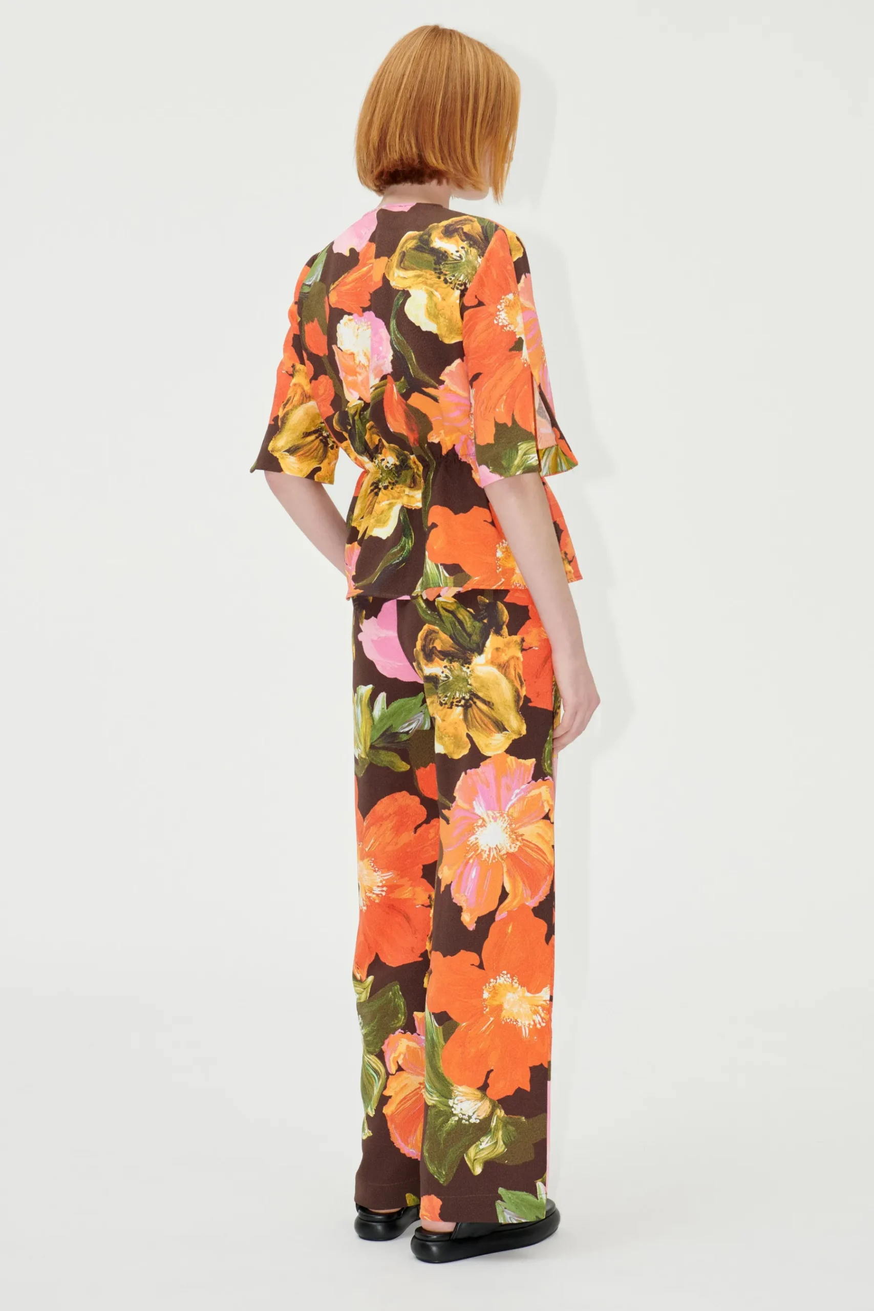 High waisted pants with a wide leg fit, side pockets and elasticated waist. Bright floral pattern. Pair with the matching SGNaica Top in Summer Night Poppies and the SGMonaco Heels in Chocolate.