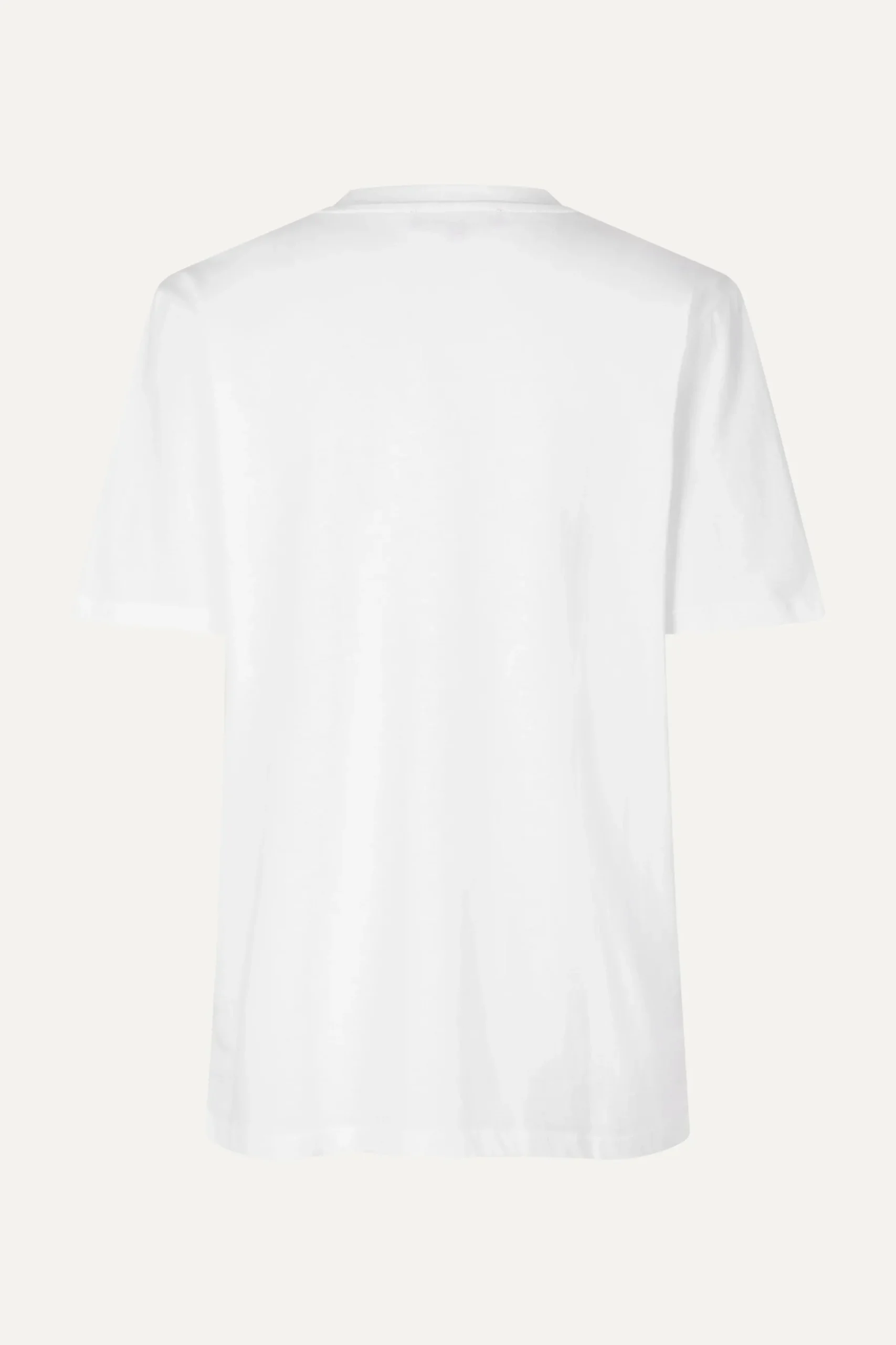 Relaxed boxy t-shirt with loose short sleeves, crewneck and intricate floral print on soft material. Pair with the SGGracie Pants in Olive.