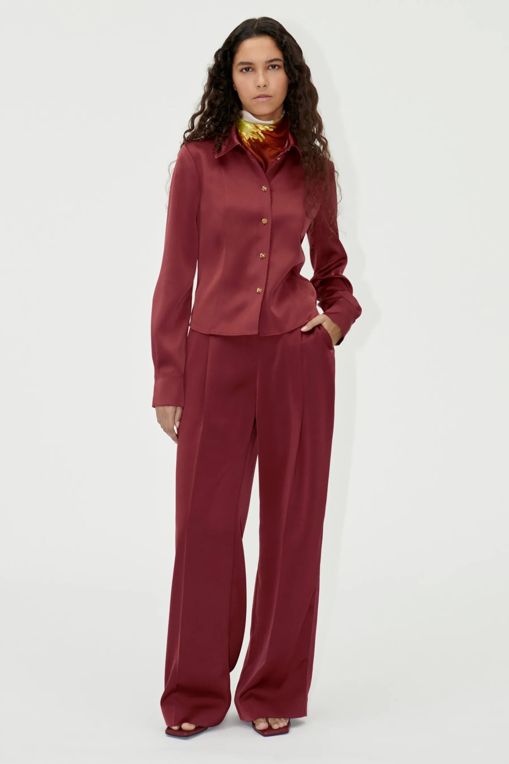 Klassisk rød satinskjorte i en tætsiddende pasform med knaplukning, lange ærmer med manchet og elegante syninger.