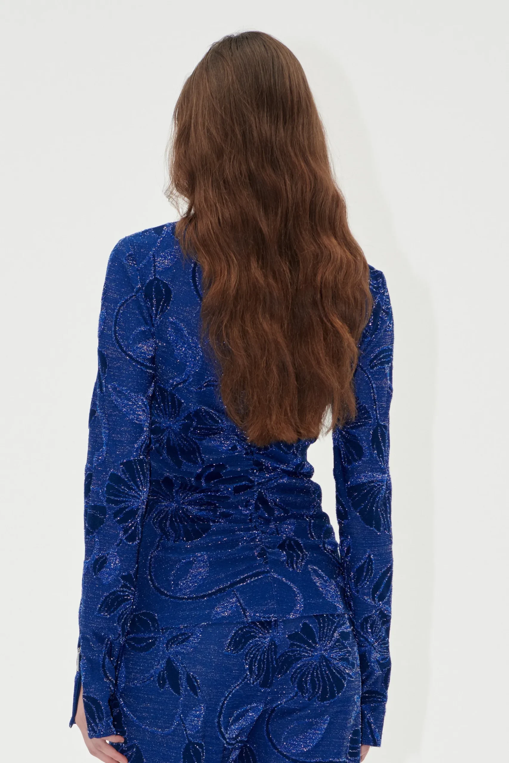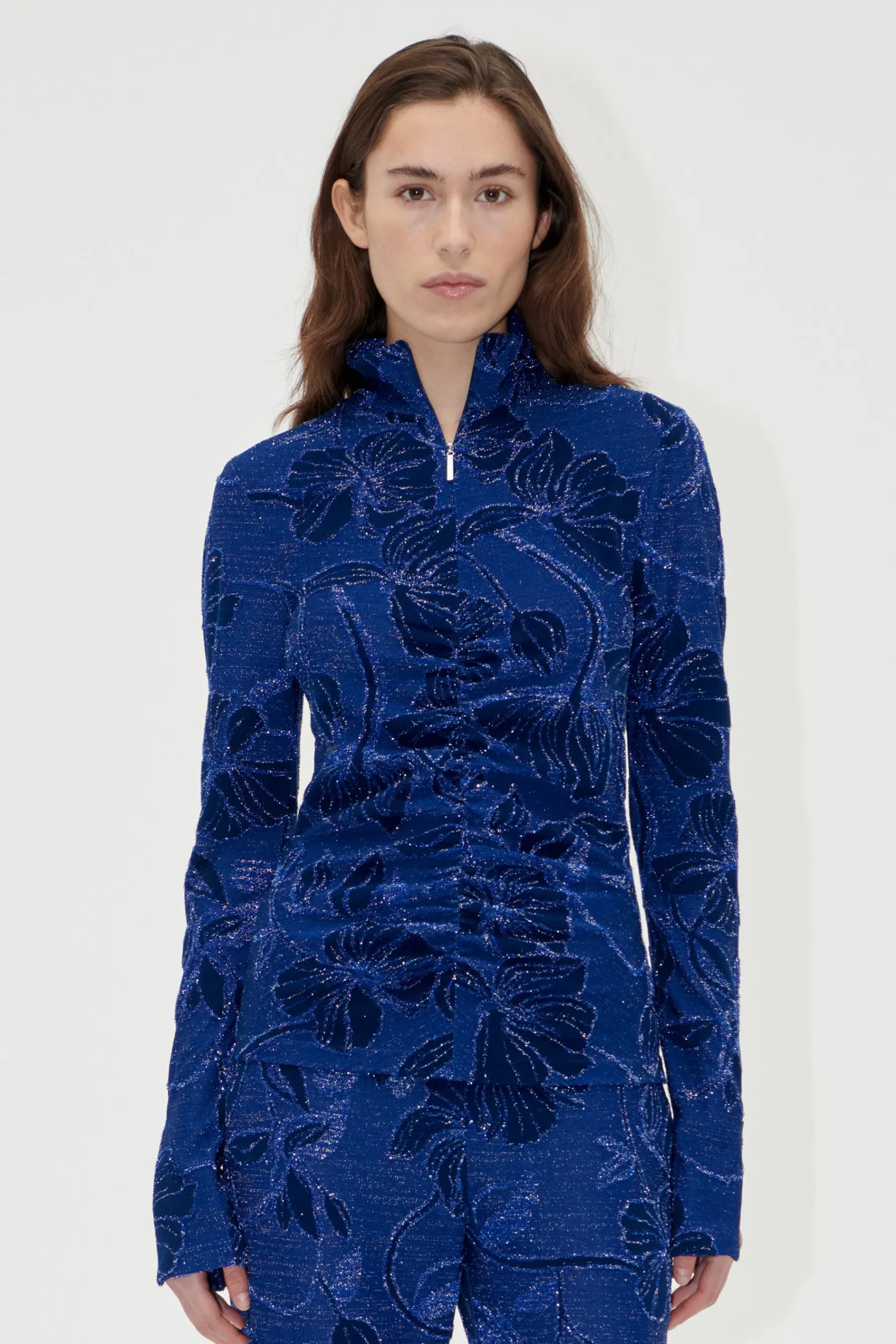 Fitted top with 1/4 zip collar, long sleeves with zippers and metallic pattern. Pair with the Elasticated Straight Long Pants in Fine Line Poppies.