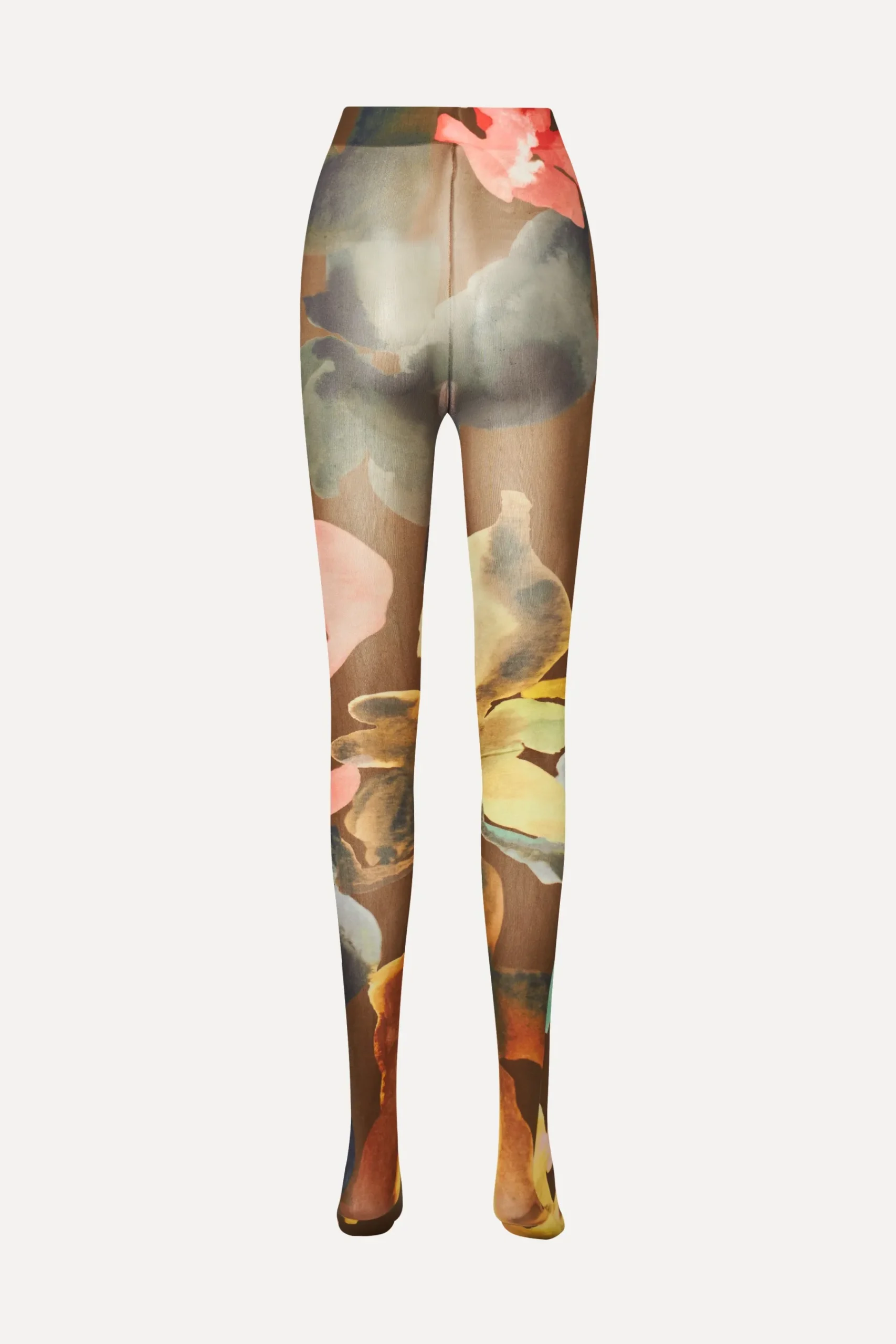 Durable full length stockings with a high waist and vivid floral pattern on comfortable stretchy material. Layer under your favourite look from the collection.