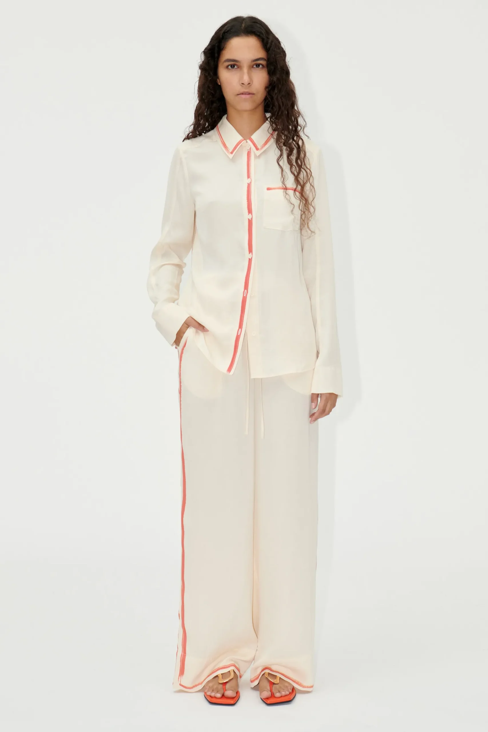 Loose fitting pants with a drawstring high waist, side pockets and minimalist paint stroke border pattern. Pair with the matching SGFelix Top in Tangerine Paintbrush and the SGReelo Flats in Sand.