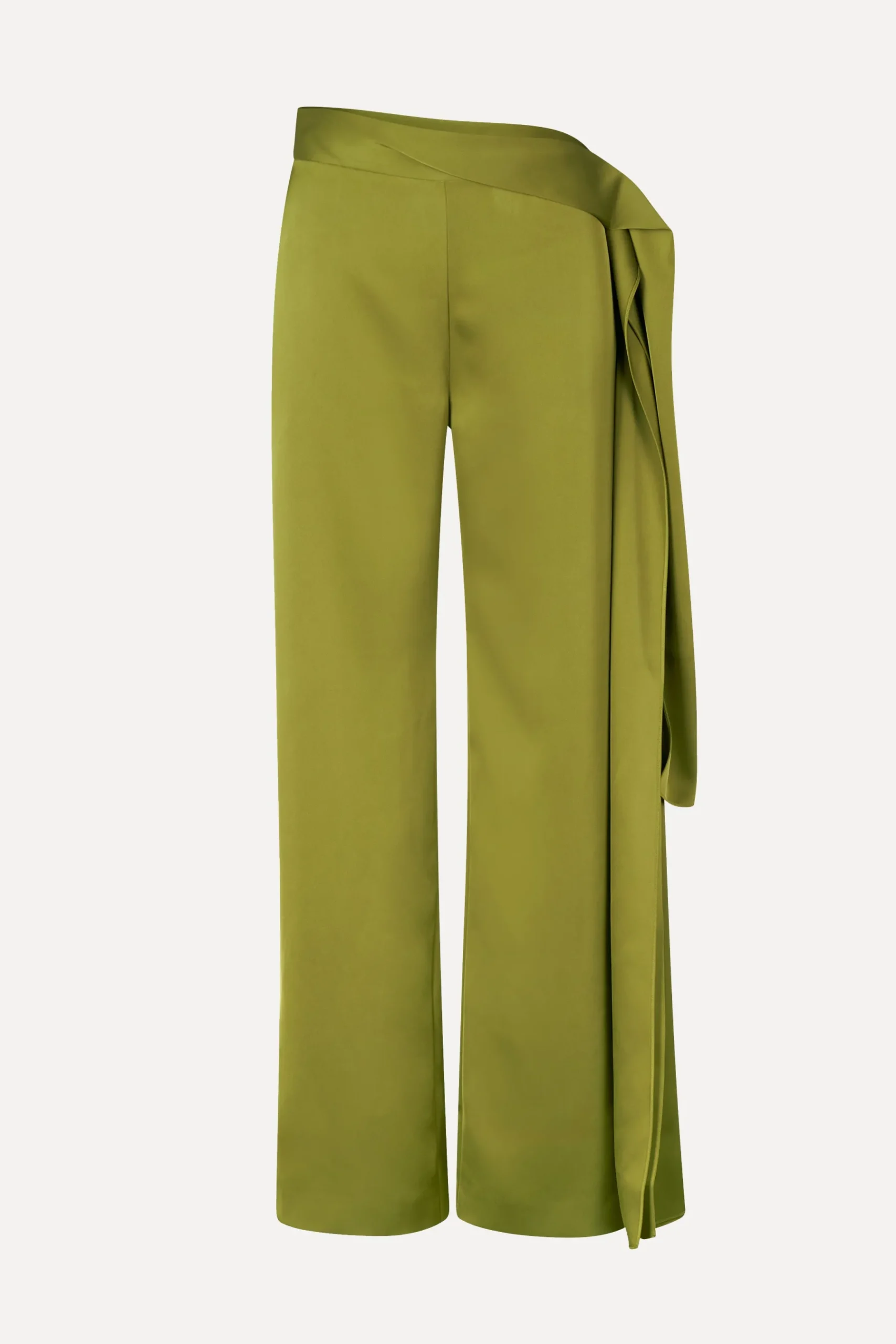 Luxurious high waist pants with a relaxed straight leg fit, elegant draped belt detail and sheened silky material. Pair with the SGElanor Top in Olive and the SGReelo Flats in Sand.