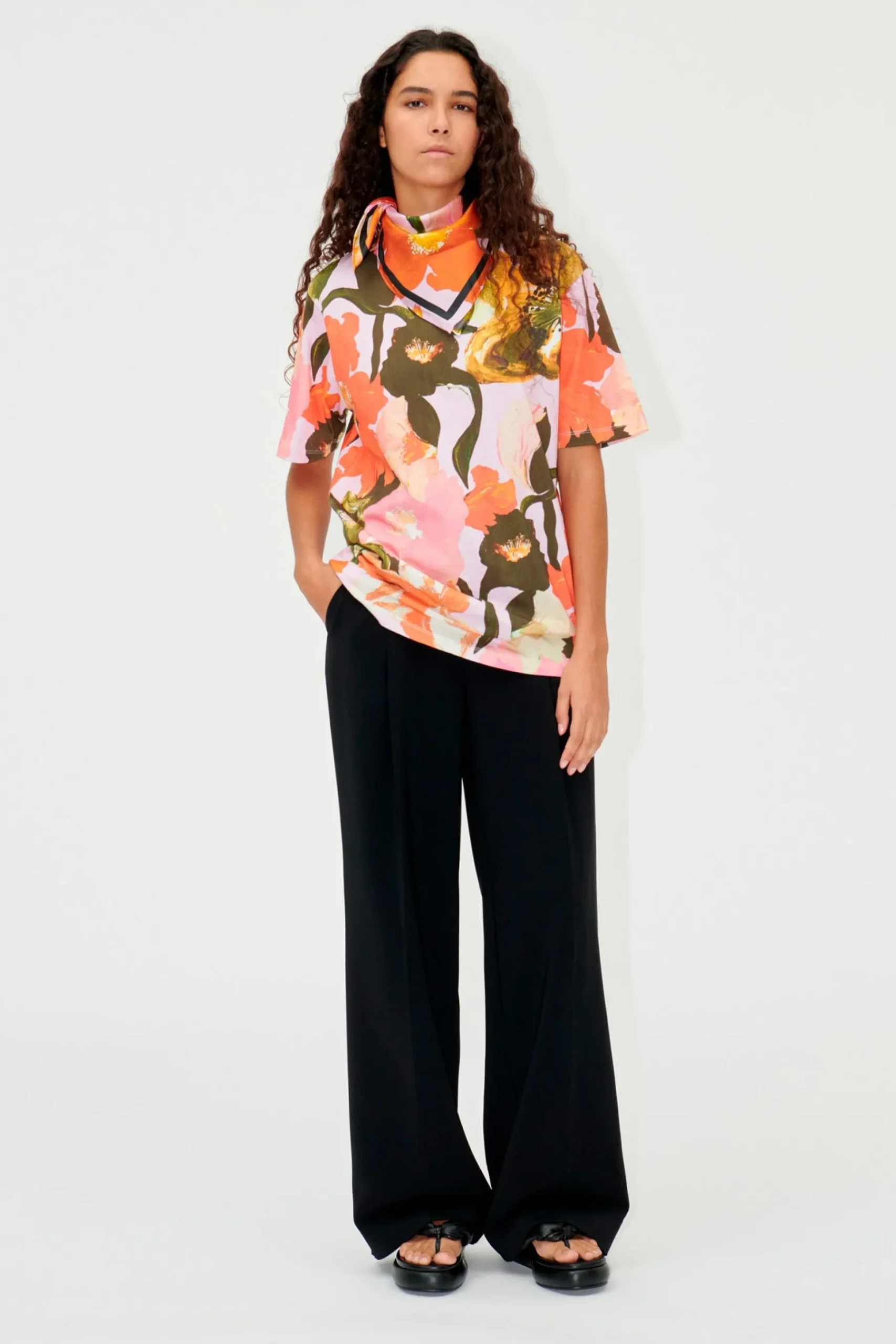 Boxy t-shirt with relaxed short sleeves, crewneck, and bright floral pattern on buttery soft material. Pair with the matching SGEmi Pants in Summer Day Poppies.