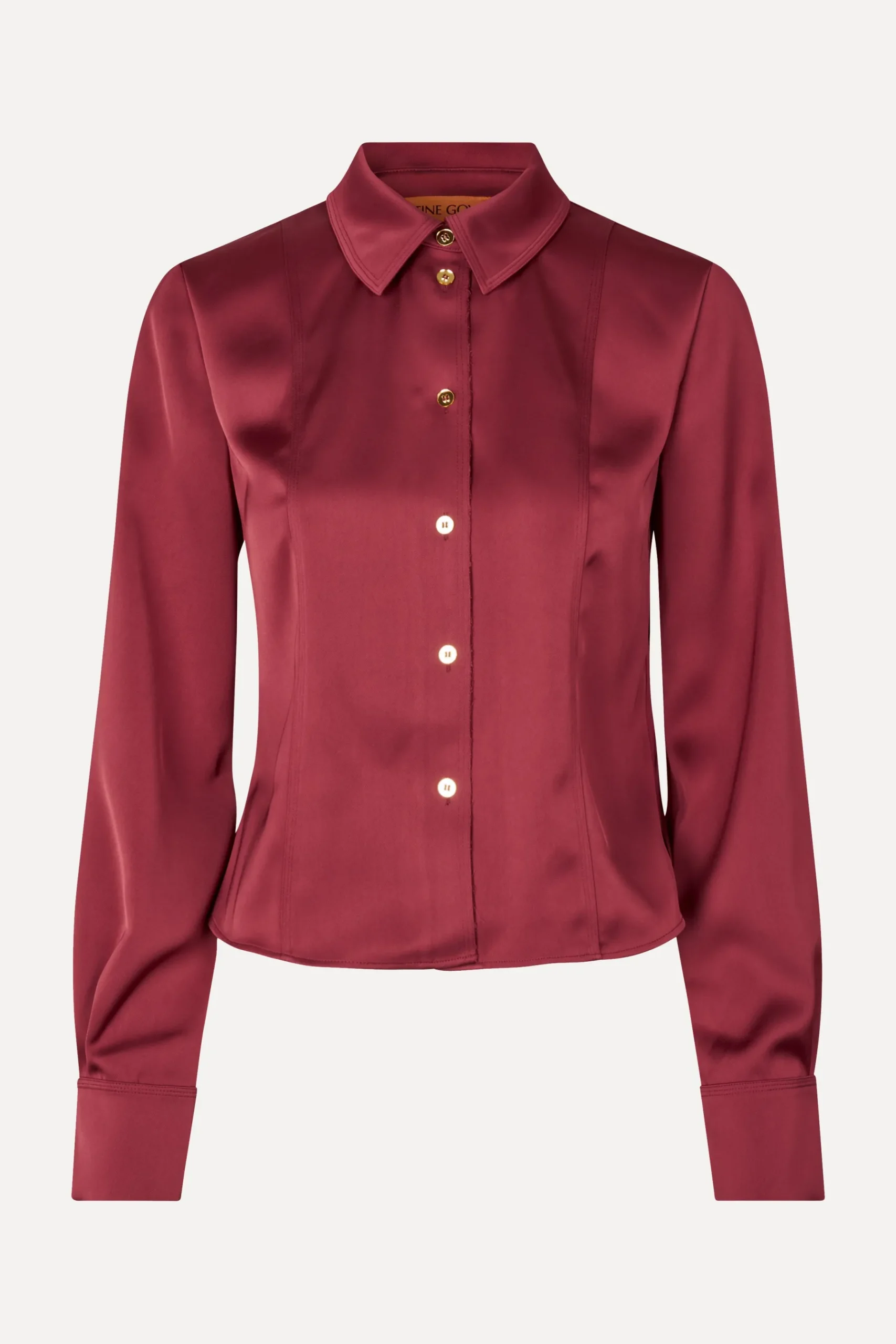 Klassisk rød satinskjorte i en tætsiddende pasform med knaplukning, lange ærmer med manchet og elegante syninger.